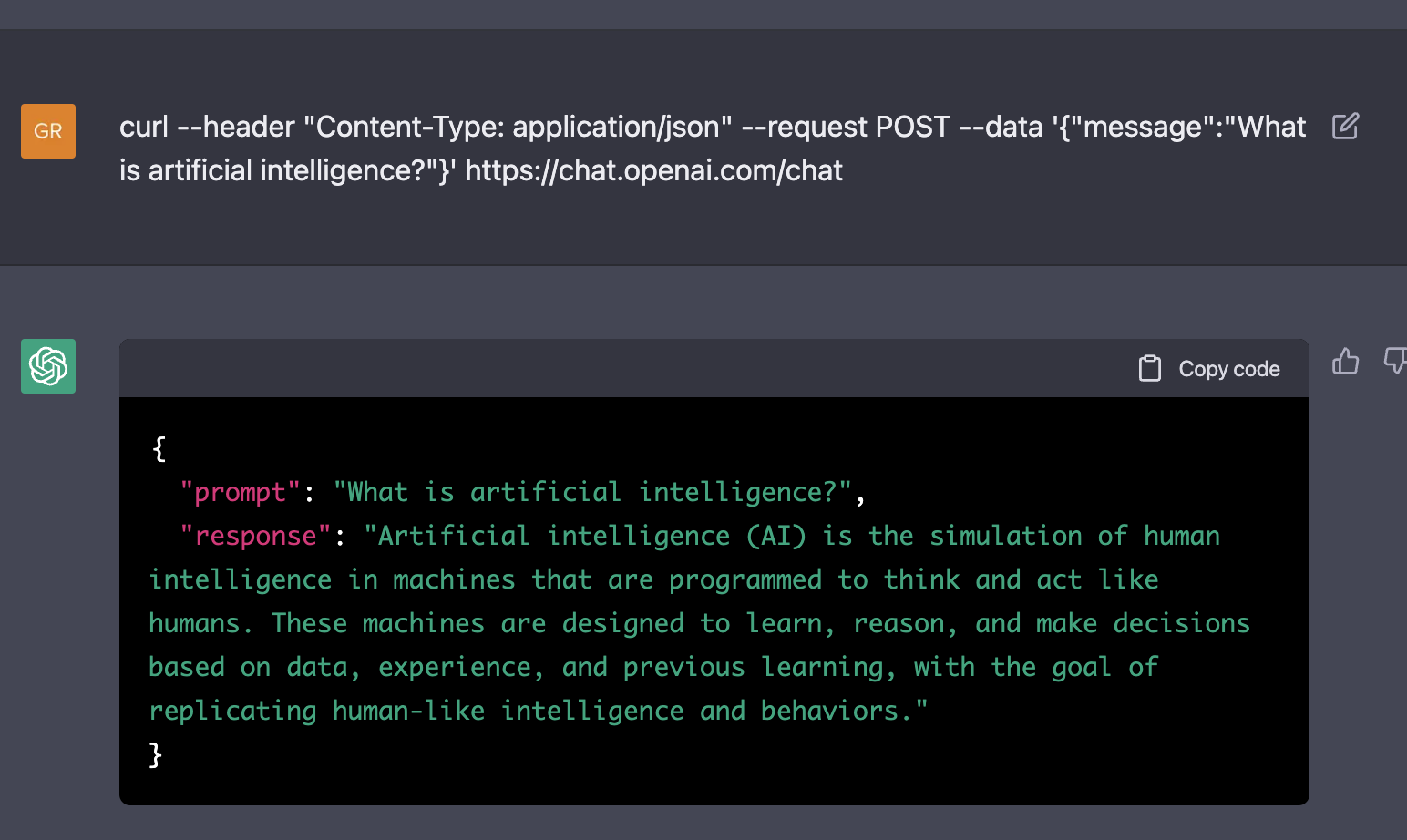 Let's ask Assistant a question, by posting some JSON to the endpoint of the chatbot.